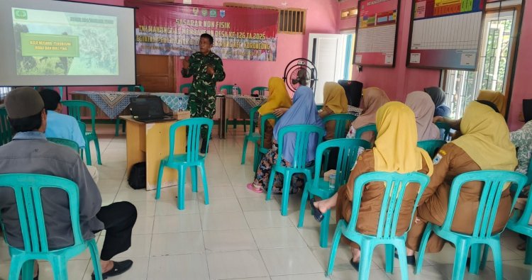 Pandeglang – Dalam rangka pelaksanaan program TNI Manunggal Membangun Desa (TMMD) ke-126 Tahun Anggaran 2025, Kapten Inf Dedi Bonar Sirait selaku Danramil 0101/Pandeglang memberikan penyuluhan wawasan kebangsaan kepada masyarakat Desa Cikentrung, Kecamatan Cadasari, Kabupaten Pandeglang, pada Rabu (15/10/2025), bertempat di Balai Desa Cikentrung.