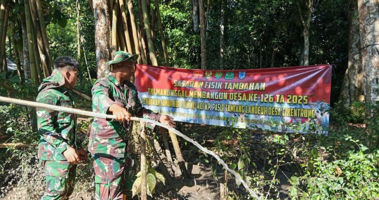 Pandeglang – Dalam rangka mendukung program TNI Manunggal Membangun Desa (TMMD) ke-126 Tahun Anggaran 2025, anggota Satgas TMMD kembali melaksanakan kegiatan fisik tambahan berupa pengeboran sumur bor di titik ke-4 yang berlokasi di Kp. Pasir Tamiang Landeuh, Desa Cikeuntrung, Kecamatan Cikeusik, Kabupaten Pandeglang.